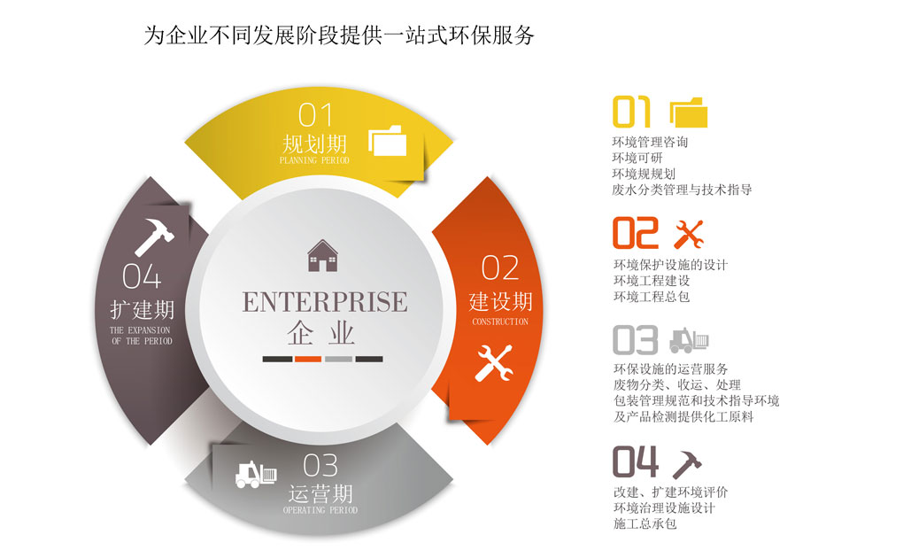 为客户提供一站式环保服务是公司的追求和承诺,公司将设计、建设、运营等资源高效地整合在一起,为不同类型的客户提供环境工程设计、建设和运营管理的一站式服务。目前公司已成功实施了百余项环境工程项目,全面掌握了各种行业的典型达标工艺。合理的流程设计,科学的管理及严格的技术控制,有效地保证了工程项目的质量,处理效果及成本节约。